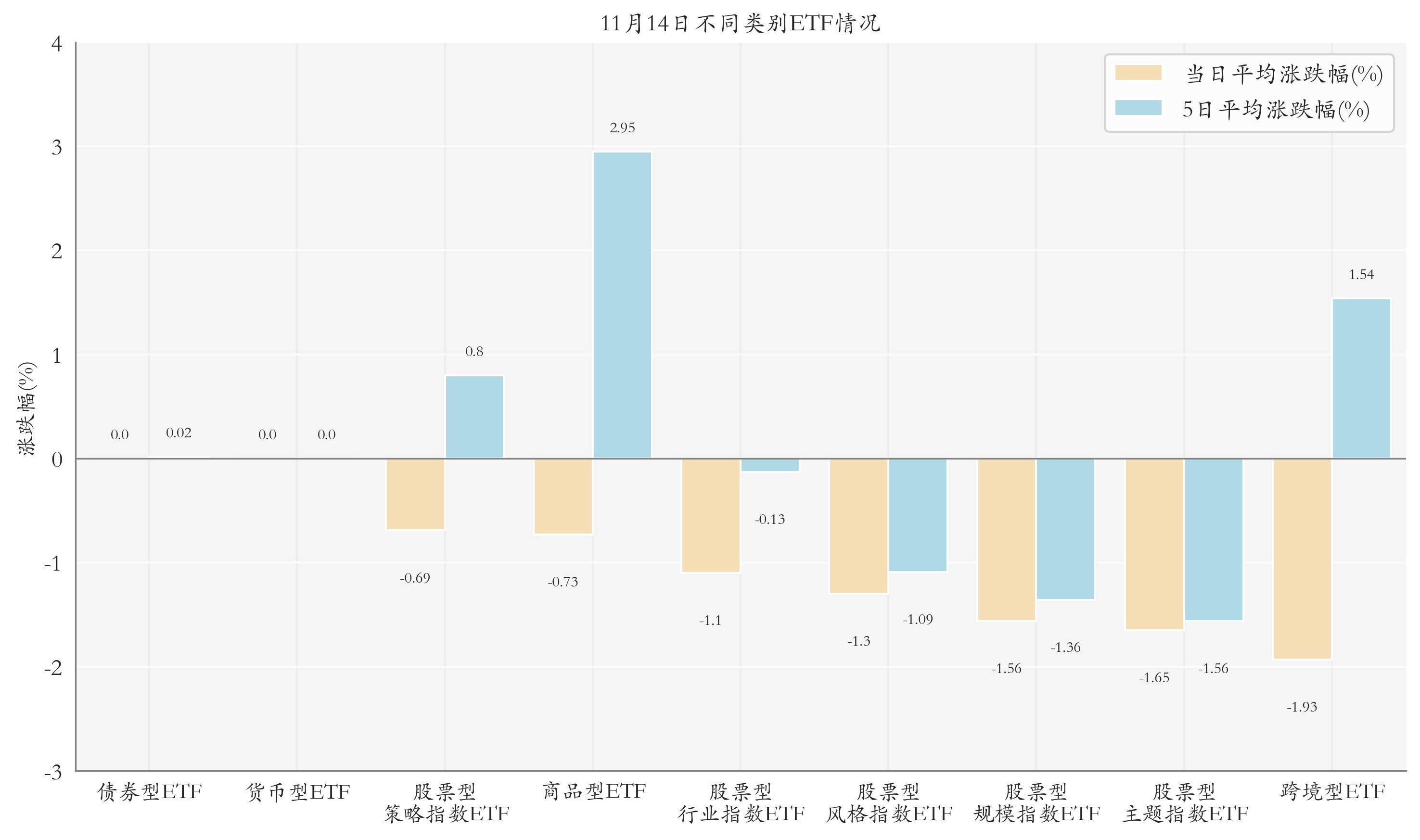 根据ETF基金的规模和涨跌幅计算得出不同分类情况下各类ETF基金的平均涨跌幅。